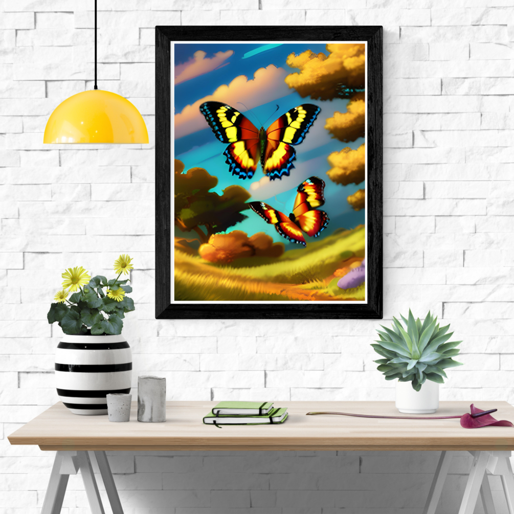 Introducing "Harmony in Flight: Butterflies United Amid Vibrant Petals and Leaves" Wall Art – a captivating masterpiece that brings the enchanting dance of butterflies to life within your living space. This stunning digital print captures the essence of nature's harmonious beauty, where a family of butterflies gracefully unites amidst a lush canvas of vibrant petals and verdant leaves.. 🦋 Key Features: ✨ Ethereal Elegance: Immerse yourself in the captivating beauty of nature's dance as butterflies unite in flight, portraying a sense of unity and serenity. 🌸 Vibrant Petals: The intricate depiction of vibrant flowers in various hues creates a dynamic backdrop, infusing your space with energy and life. 🍃 Lush Foliage: Verdant leaves add depth and a touch of realism to the artwork, providing a natural canvas for the butterflies' graceful flight.🎨 High-Quality Print: Crafted with meticulous attention to detail, this digital print promises vibrant colors and sharp imagery that's sure to captivate the eye. 🖼️ Versatile Decor: Perfect for adding a touch of nature's elegance to any room – from living spaces to bedrooms, offices, and even nurseries. 💡 Easy Display: Available in a variety of sizes, this digital wall art is ready to download, print, and frame according to your preference. 📩 Instant Access: Upon purchase, you'll receive a download link directly to your email, allowing you to enjoy your new artwork in an instant. 🌟 Elevate your decor with "Harmony in Flight: Butterflies United Amid Vibrant Petals and Leaves" – a mesmerizing blend of nature's beauty and artistic expression that's sure to spark conversations and admiration among your family and friends. [Link to Purchase Now] Note: Frame is for visualization purposes only and is not included in the purchase. Experience the serenity of nature's dance in your own space. Order your digital wall art today and let "Harmony in Flight" take your breath away.